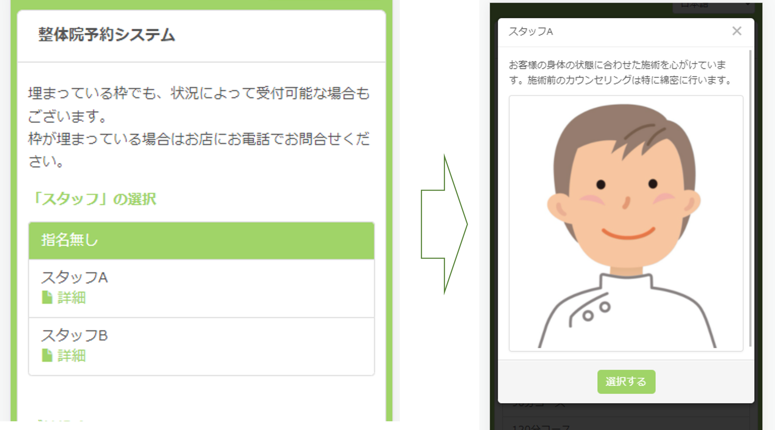 各スタッフ様のシフトに対応したスケジュール予約が可能です。